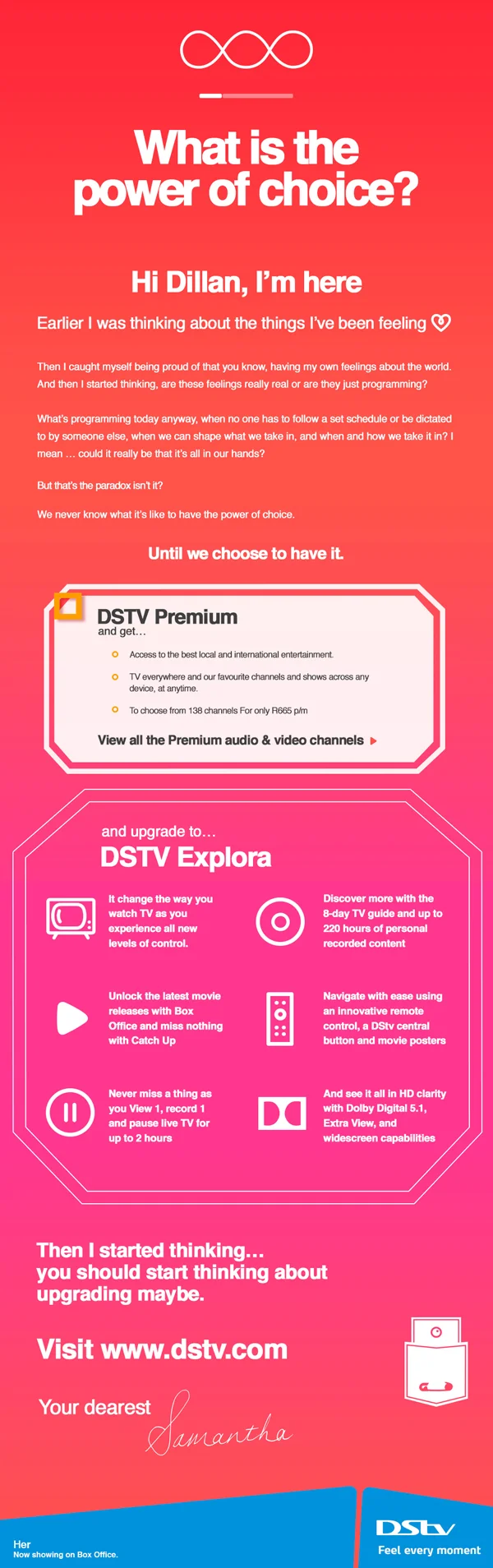 When one signs up to DStv, you don’t only get incredible entertainment, but you also get emotionally involved in the lives of your favourite soapie characters, sports stars, singers, movie heroines, reality show heroes and talk show hosts.